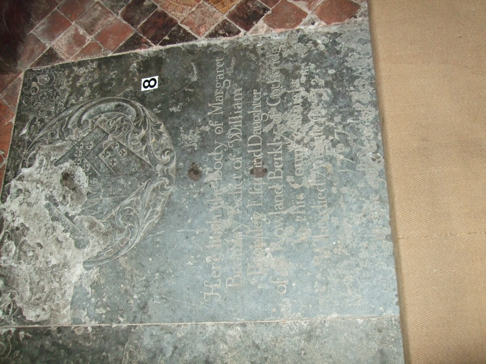 The discontinuous Communion Rail passes over the lower quarter of this stone doing no damage